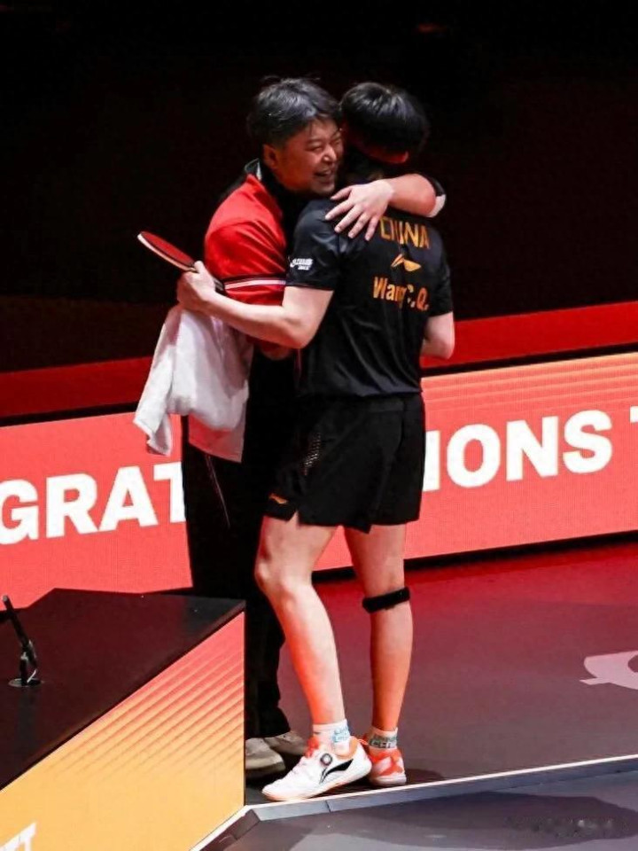 WTT香港总决赛,王楚钦战胜松岛辉空后,转身不是冲向看台,而是紧紧拥抱了一个人——临时担任他场外指导的孙逊。这个拥抱,时间有点长,力度有点大。